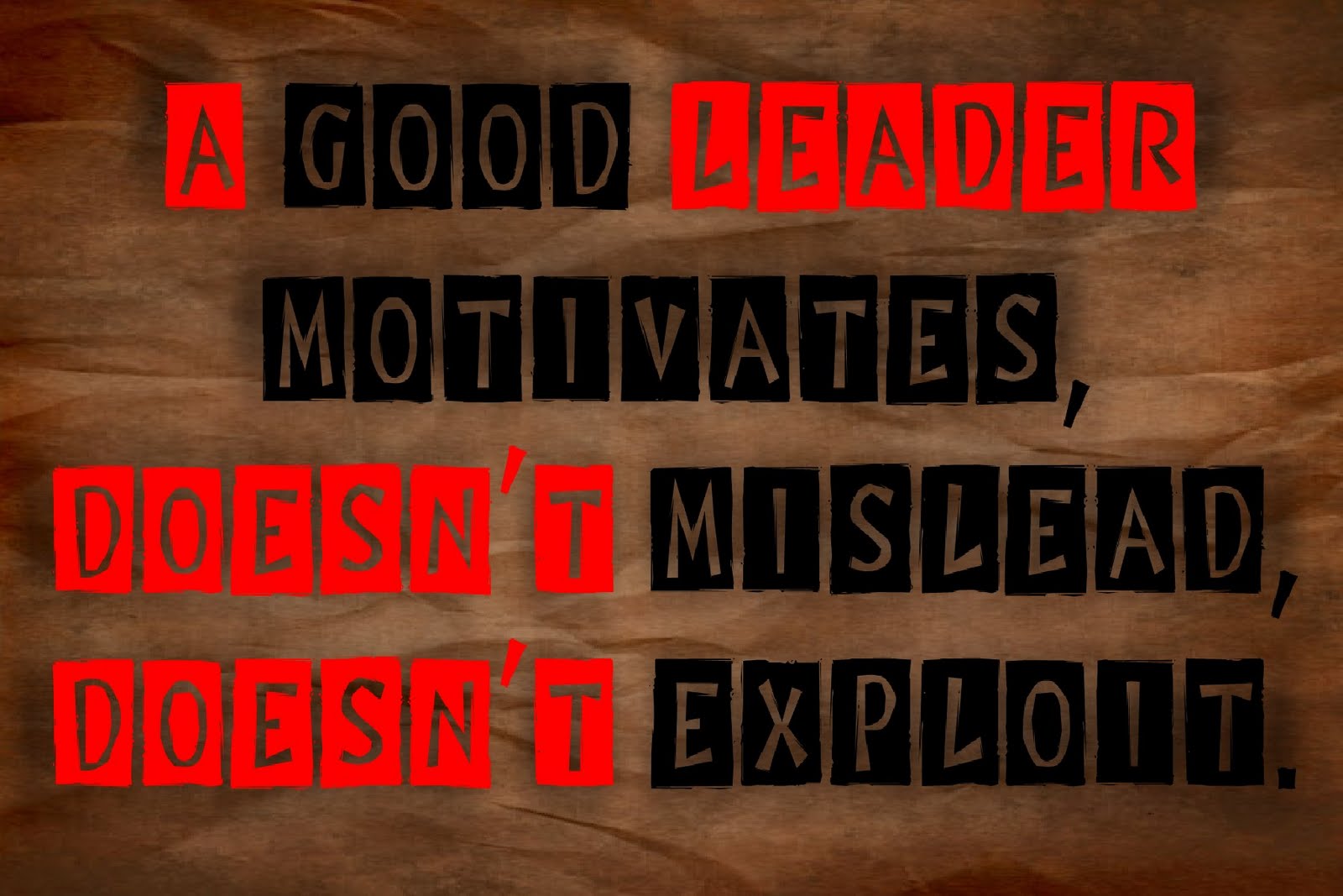 - 10) GOOD LEADERS ARE MOTIVATED BY A GREATER, DEEPER PURPOSE, BIGGER THAN THEMSELVES, NOT JUST BY THEIR OWN INSECURE EGO, OR A SHALLOW DESIRE TO BE THE BOSS AND THE CENTER OF ATTENTION --